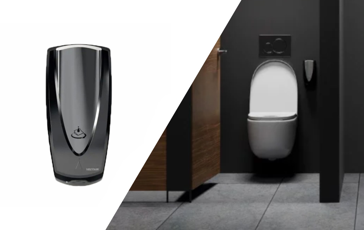 The system dispenses a fast-drying sanitising solution that enables users to quickly clean toilet seats and other high-touch surfaces before use. Its compact, modern design makes it suitable for offices, hospitality venues, retail spaces, and other high-traffic washrooms.